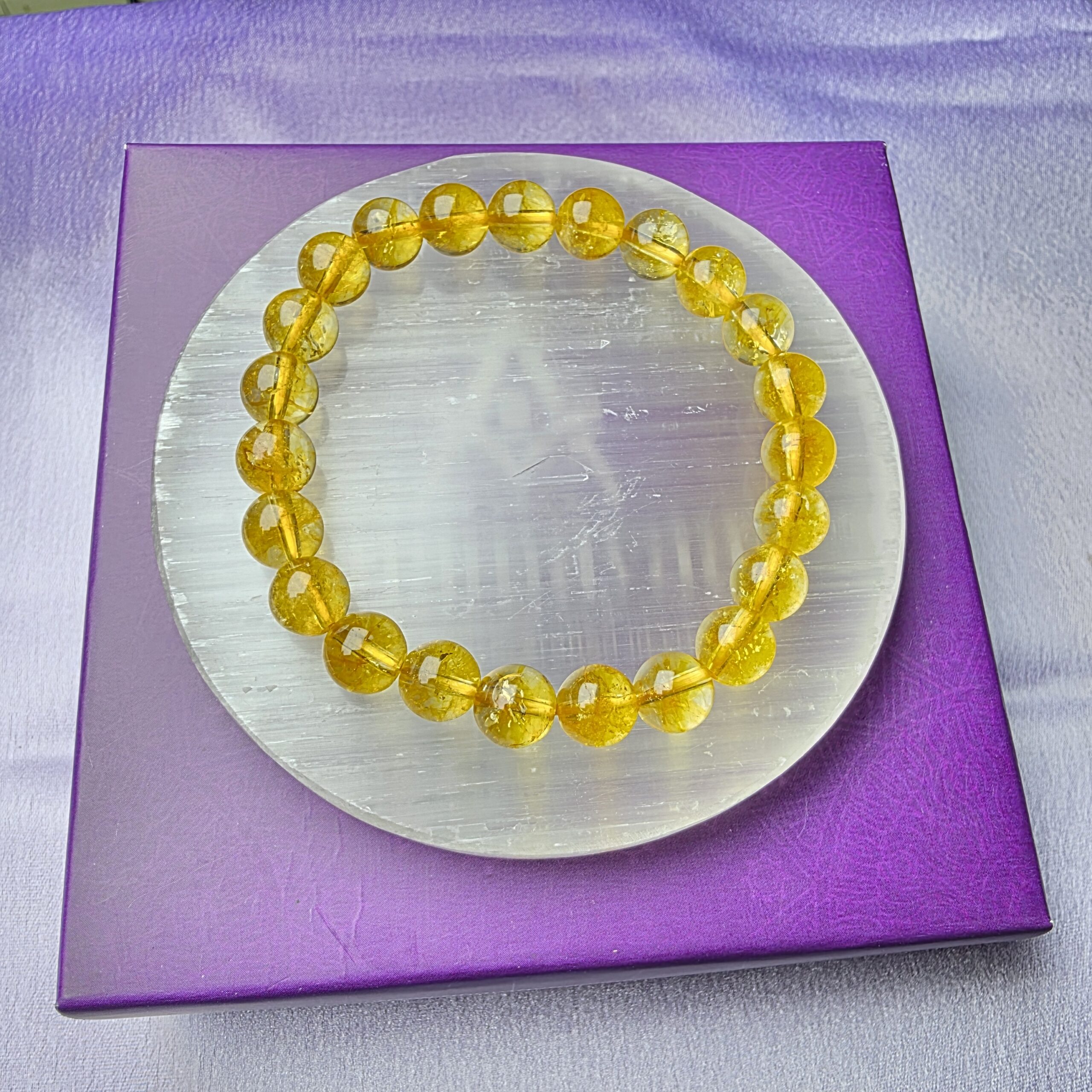💎 Selenite power: Place your Citrine Bracelet on the Selenite Plate overnight to self-cleanse and amplify abundance energy—no extra effort required !