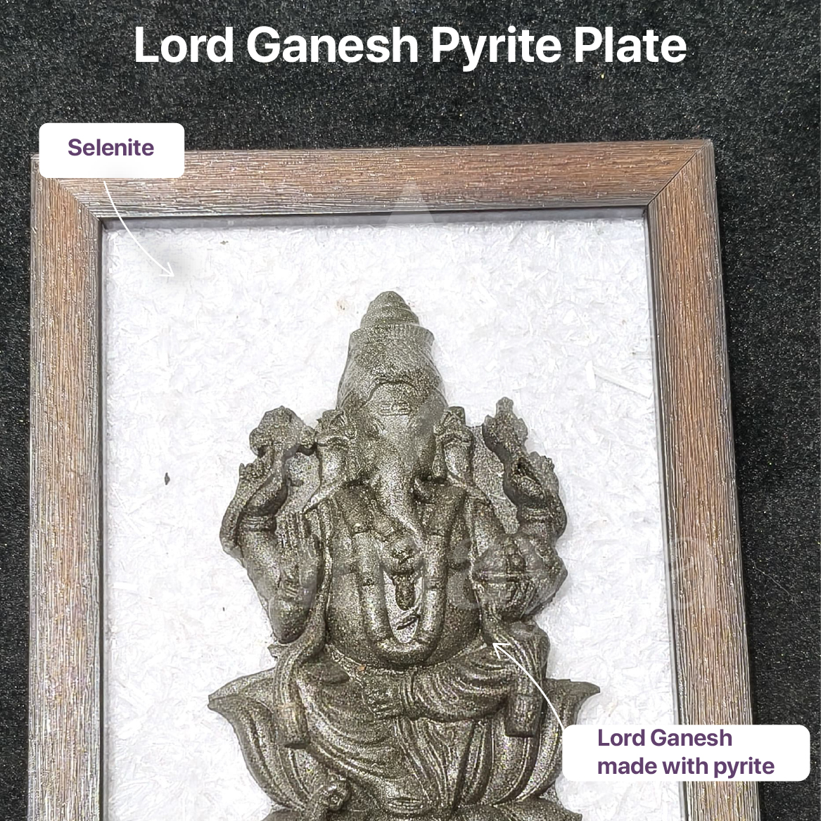 Bring divine blessings, prosperity, and positivity into your home with this sacred combination of Lord Ganesha in Pyrite set on a Selenite plate.